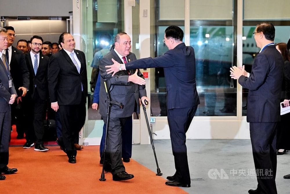 Imágenes divulgadas por el gobierno taiwanés mostraron a Giammattei escoltado por el ministro de Relaciones Exteriores de la isla, Joseph Wu, al llegar al Aeropuerto Internacional Taoyuan.