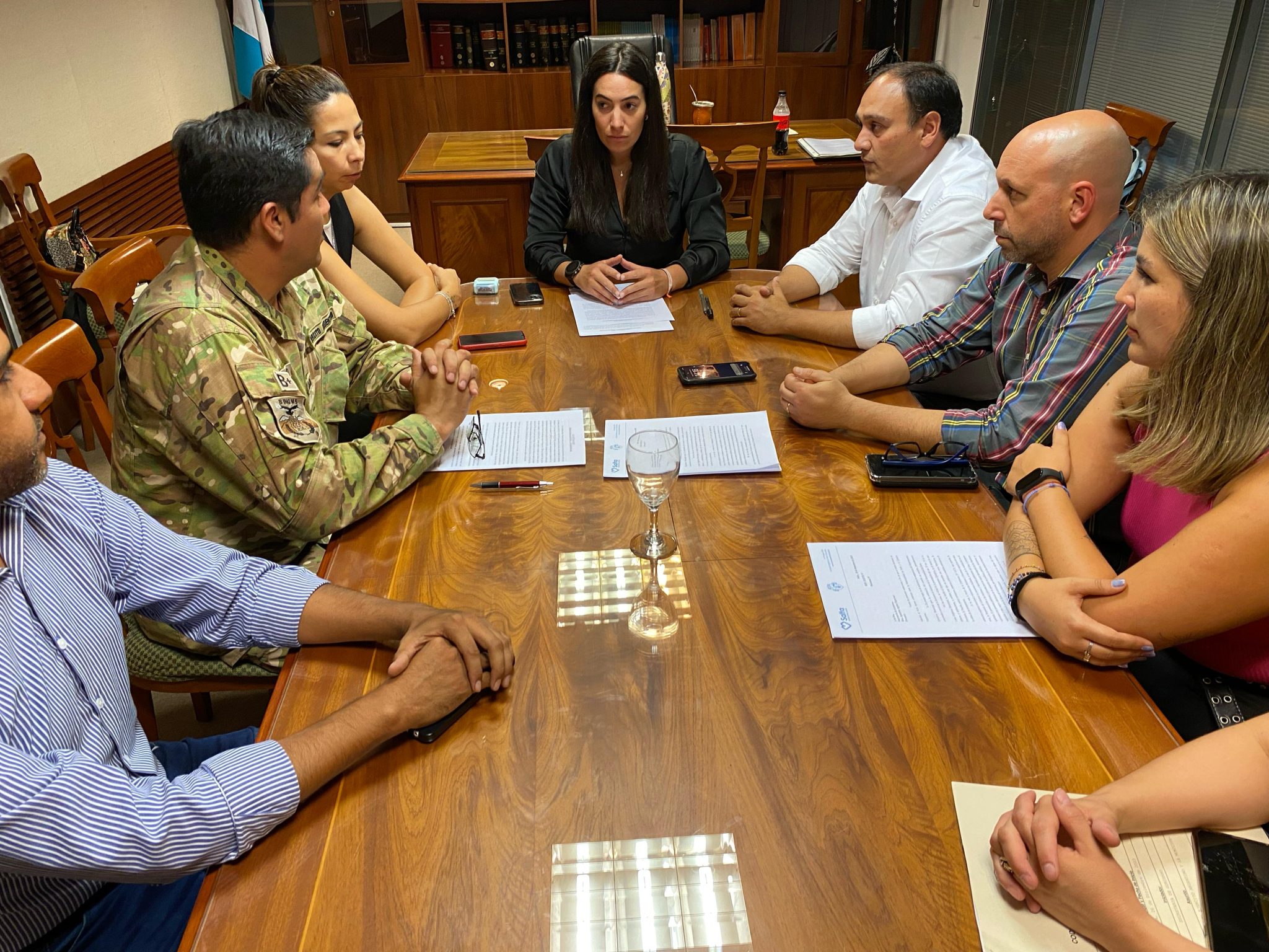 Participaron de la firma: la secretaria de Gobierno, Agustina Agolio; el secretario de Ambiente y Servicios Públicos, Martin Miranda y; el teniente Coronel del Batallón de Ingenieros de Montaña Vta, Luis Rubio.
