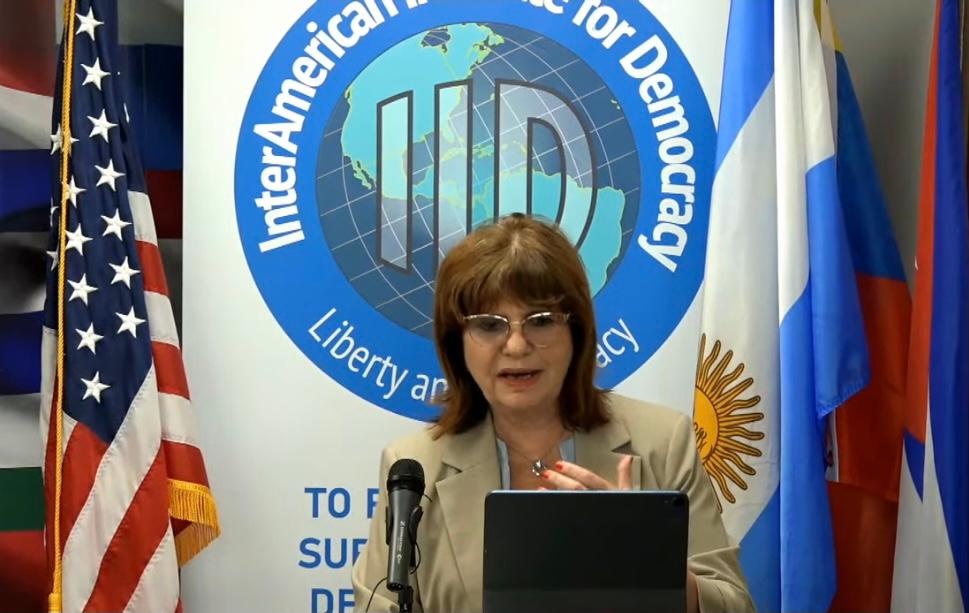 En su exposición ante un foro organizado por la Interamerican Institute for Democracy, la precandidata a la presidencia de Juntos por el Cambio llamó a “hacer un contrapoder al Grupo Puebla y ayudar a aquellos países que viven las peores dictaduras en el continente”.
