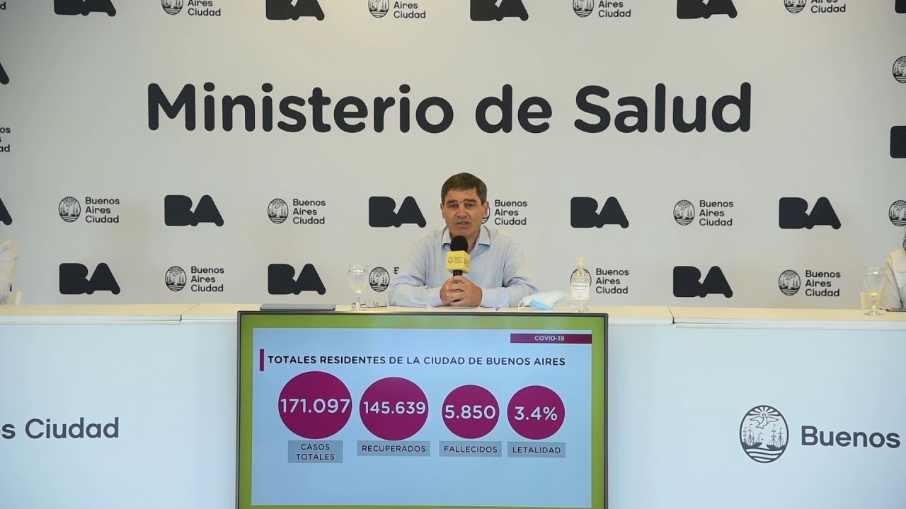 En cuanto al informe diario de casos de coronavirus, Quirós indicó que “al día de hoy hemos confirmado 171.097 enfermeros, de los cuales se han recuperado 145.639 personas, han fallecido 5.850, lo que hace una letalidad para la Ciudad de Buenos Aires de 3,4%”.