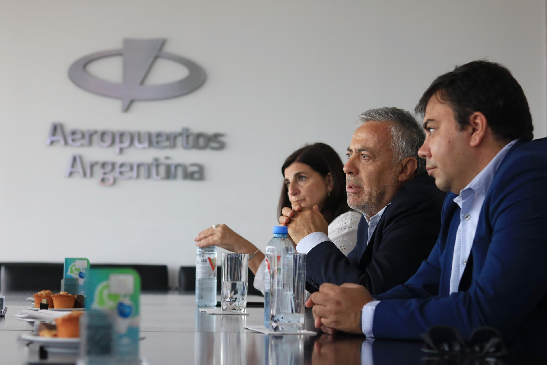 En las instalaciones del Aeroparque Internacional Jorge Newbery en Buenos Aires, el Gobernador Alfredo Cornejo se reunió con el director ejecutivo de Aeropuertos Argentina 2000, Daniel Ketchibachian; el gerente general de la Unidad de Negocios del Oeste, Sergio Rinaldo; la titular de Emetur, Gabriela Testa, y el intendente de Las Heras, Francisco Lo Presti.