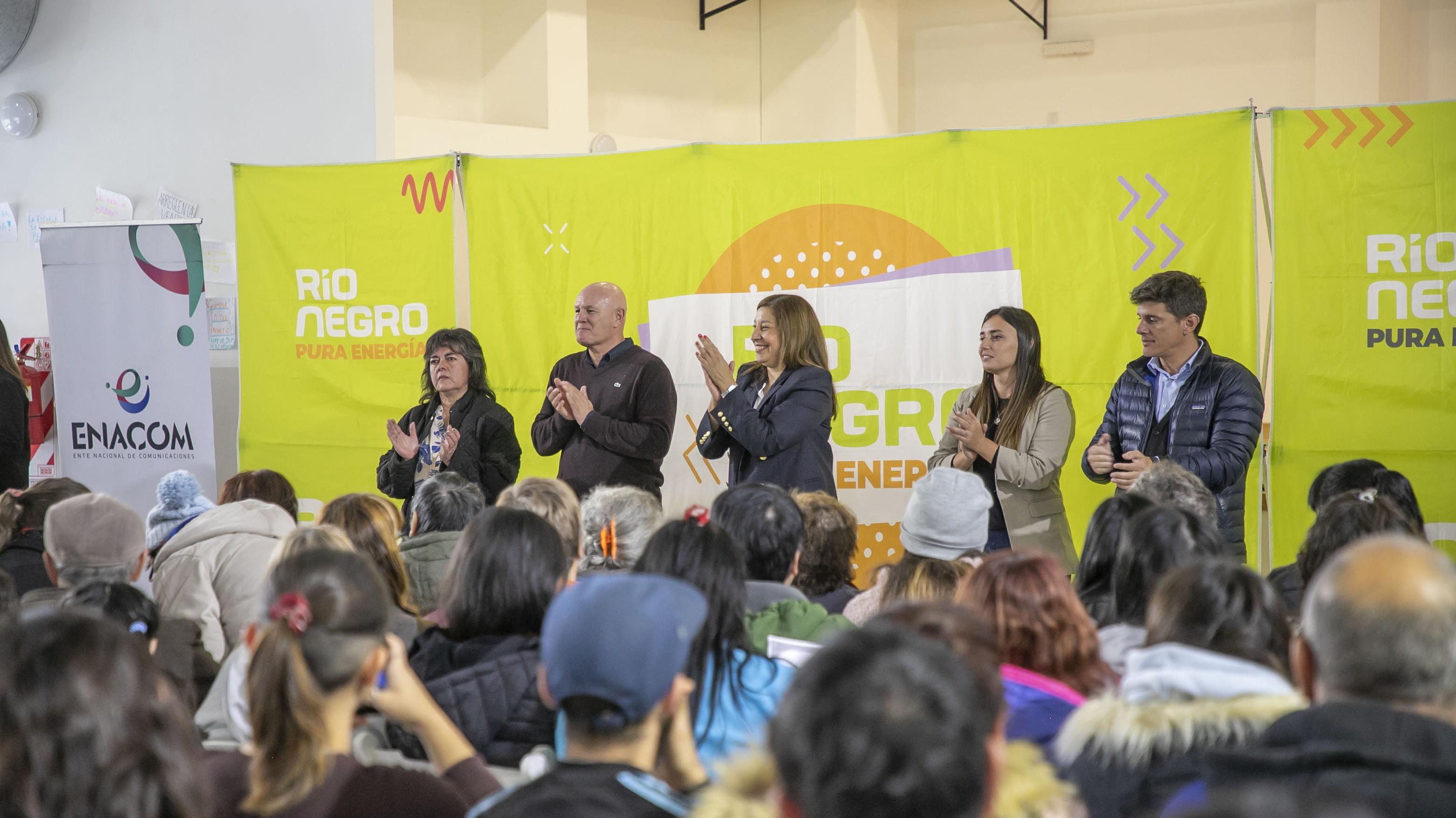 La Gobernadora Arabela Carreras encabezó en Bariloche el acto de entrega de 707 tablets a jubilados y estudiantes de Bariloche, en el marco de un convenio entre el Gobierno de Río Negro y el Ente Nacional de Comunicaciones (Enacom).