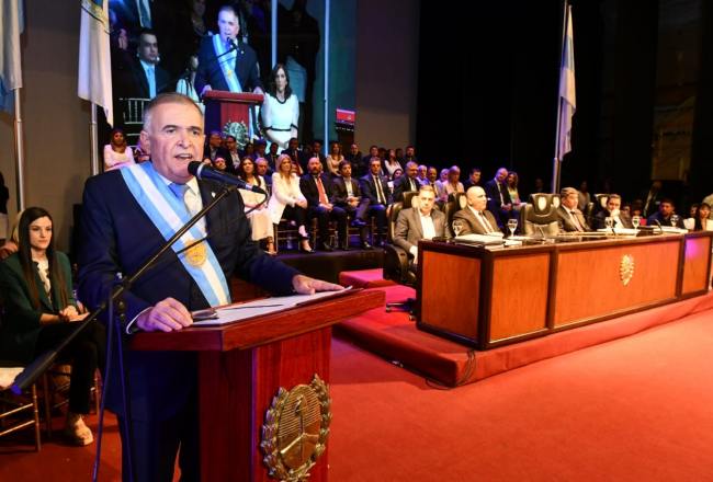“Son momentos de grandes desafíos, pero quienes tenemos la responsabilidad institucional tenemos que asumir el rol que los ciudadanos nos han encomendado a través del voto, de ese voto que gracias a la democracia podemos emitir”, inició su primer discurso como gobernador, Osvaldo Jaldo, desde el escenario del teatro San Martín.