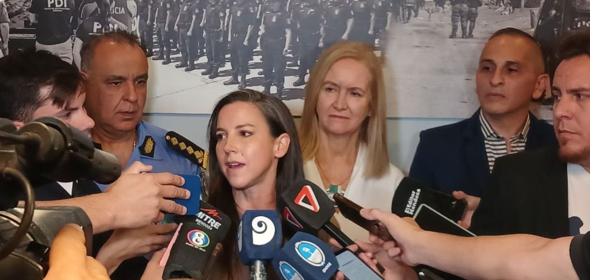 La funcionaria estuvo acompañada por la fiscal general del Distrito Cuyo, María Gloria André, y por autoridades policiales de Investigaciones y de la Policía de Lucha Contra el Narcotráfico.